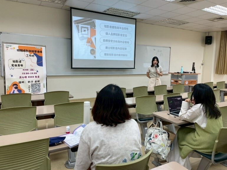 114年4/23、4/30,舉辦「短影音定位策略-確立個人或品牌的短影音風格與市場定位」、「短影音企劃與腳本設計-規劃出吸引人的短影音內容」二個主題,本系列課程聚焦「短影音行銷」與「企劃腳本設計」兩大主題,結合趨勢解析與實務操作,協助學員全面掌握短影音製作與策略核心。課程內容涵蓋平台特性分析、個人品牌定位、受眾輪廓建立、內容策略擬定、腳本撰寫技巧、文案優化及案例剖析,並透過分組討論與實作演練強化實戰力。課堂氣氛熱烈,學員參與積極,講師提供實用工具與即時回饋,有效提升學員從企劃構想到拍攝前腳本設計的整體執行能力,整體學習成效良好。
