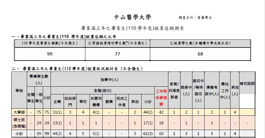 110學年度畢業滿3年學生流向追蹤問卷調查(碩士)